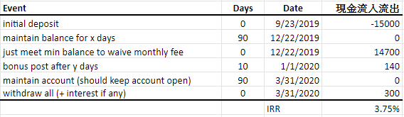 Checking 獎勵不會有機會成本的問題,因為錢進去之後可以馬上轉走,不過是過個水而已,所以如果允許的話,我比較喜歡拿這種的。