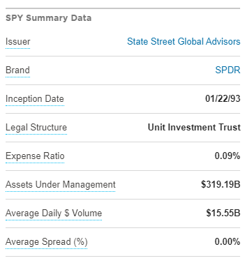 所謂的比較貴,就是說 SPY 的 管理費用比率 (Expense Ratio) 比其他的高,要 0.09%。